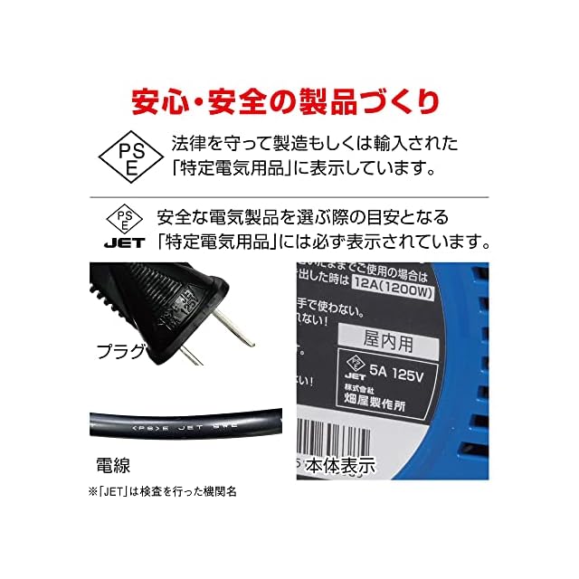 商品名:ハタヤ (HATAYA) コードリール 屋内用 ホームリール 100V型 手動巻 8m 温度センサー内蔵 (電線溶解防止機能) コンセント2個 コンパクト 家庭用 ギフト用 マックリール MS-8-B ブルー