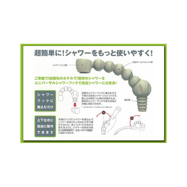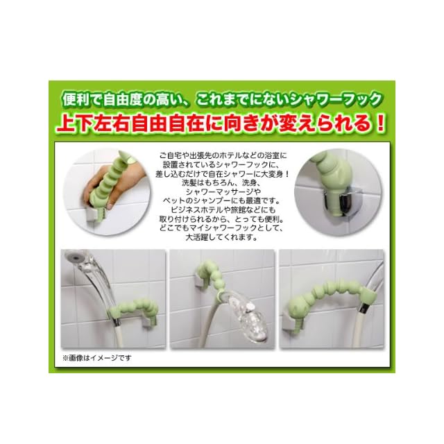 お使いのシャワーフックに差し込むだけで、シャワーの向きが上下左右自在に変えられます。