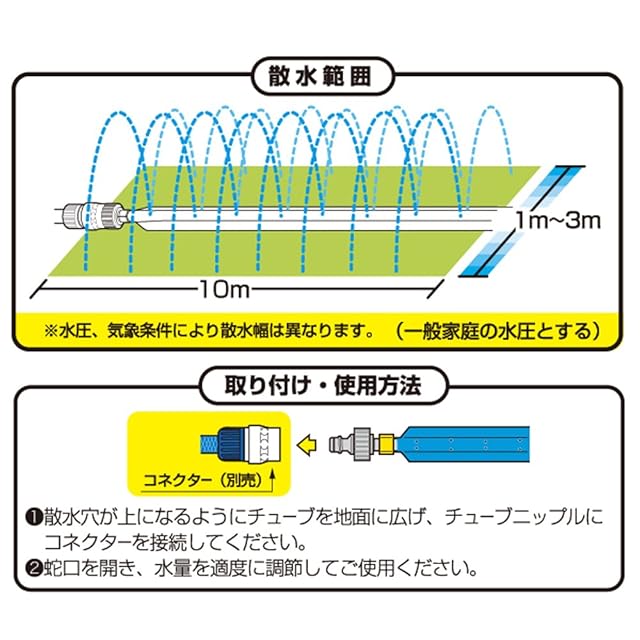 商品名:タカギ(takagi) ポリ塩化ビニル (PVC) 散水チューブ 10m 散水範囲:幅1-3m×長さ10m 350穴 G410 ブルー