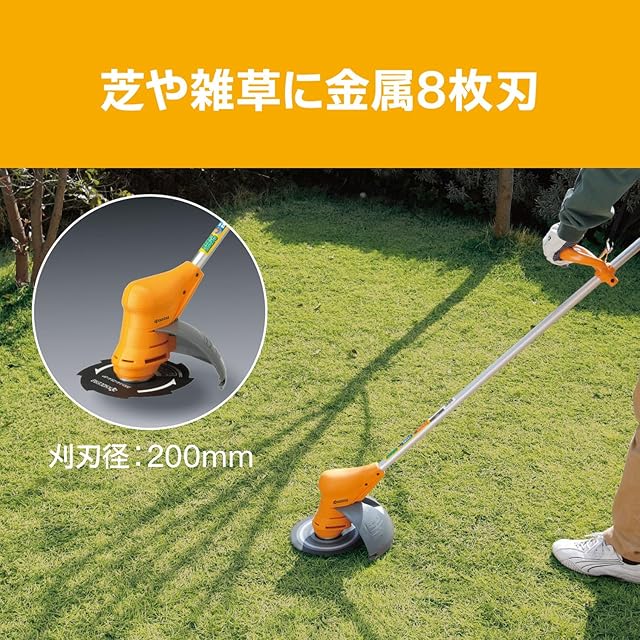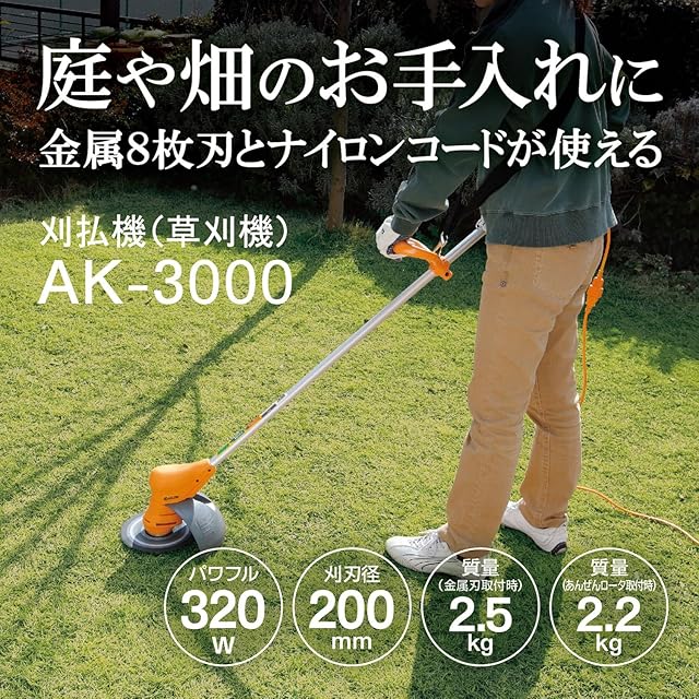 京セラ(Kyocera) 旧リョービ 刈払機 草刈機 AK-3000 金属8枚刃 あんぜん ロータ 697450A 【金属8枚刃とナイロンコードの両刃使い 密集した雑草から石の多いところの草刈りまで】 低騒音 金属8枚刃200mm ナイロンコード2.0mm 長さ143~145cm 延長コード10M | emishop315