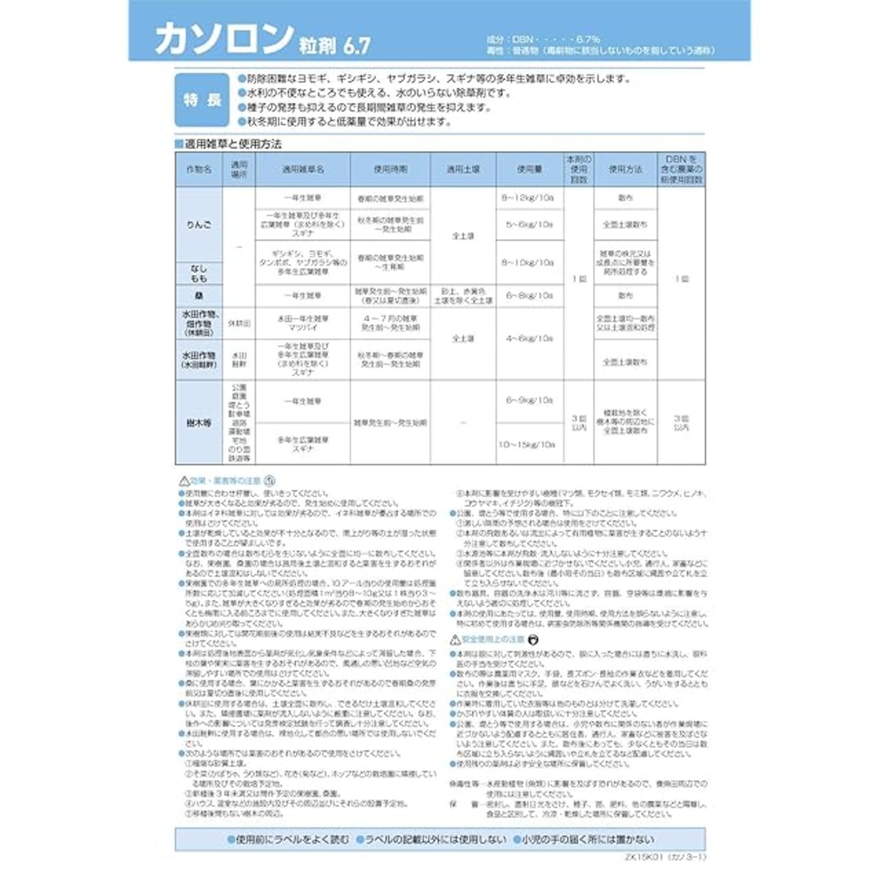商品名:アグロカネショウ カネショウ 除草剤 カソロン粒剤 6.7% 3Kg