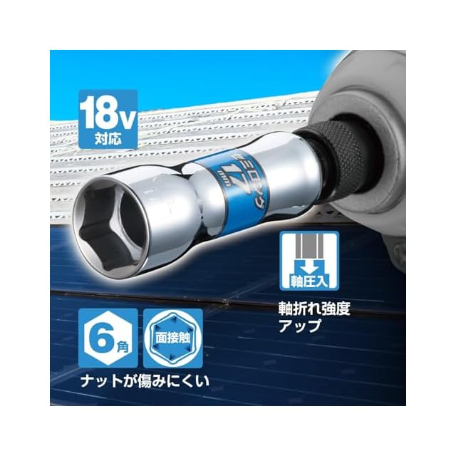 セット明細:セミロングソケット対辺8、10、12、13、14、17、19、21、24mm 各1本入 18V 対応