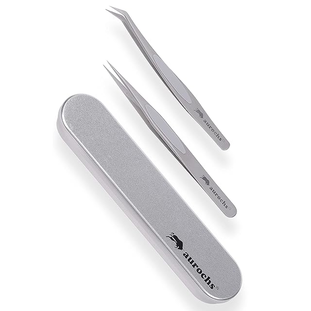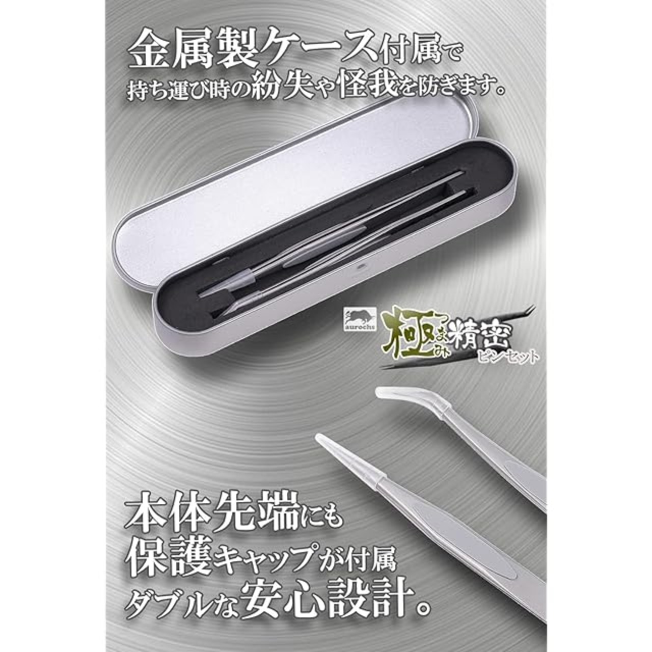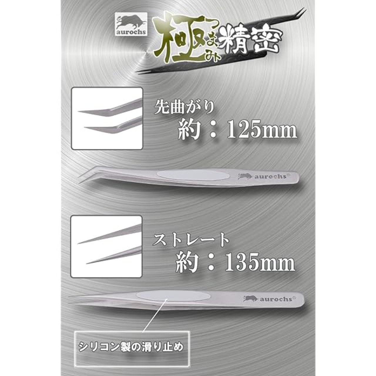 商品名:aurochs 極ツマミ 精密 ステンレス ピンセット ストレート 先曲がり 2本セット ケース付