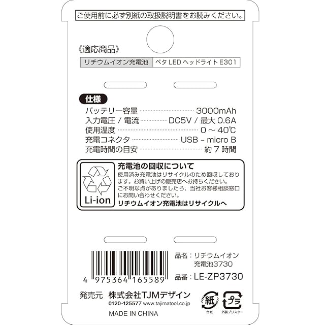 商品名:タジマ リチウムイオン充電池3730 LE-ZP3730