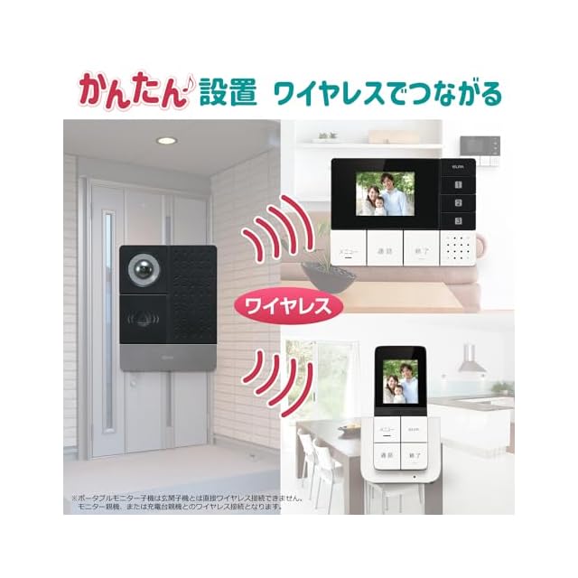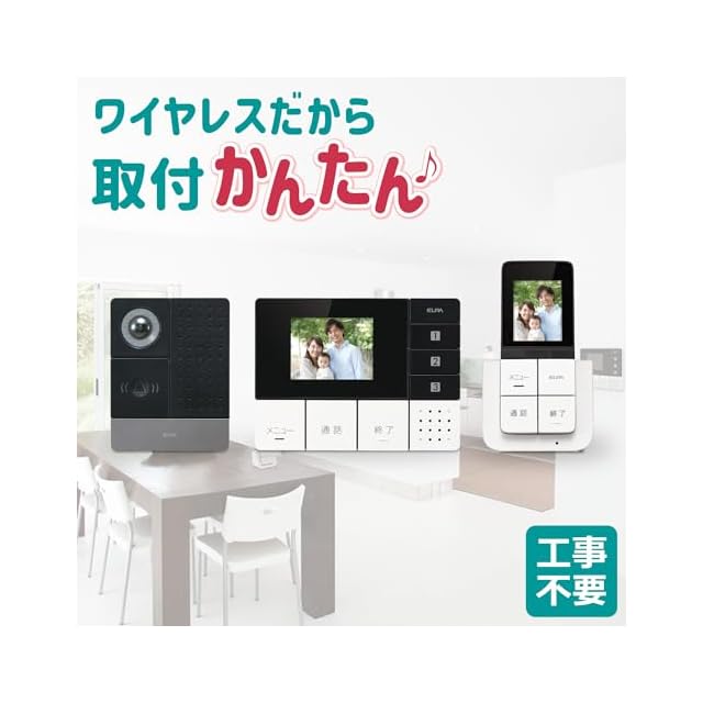 商品名:エルパ (ELPA) テレビドアホン ワイヤレスインターホン 配線工事不要 自動録画 広角カメラ LEDライト付 乾電池式 DHS-TMP2320