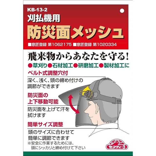 商品名:セフティー3(Safety-3) 草刈機 刈払機用 防災面 メッシュ 通気性 KB-13-2