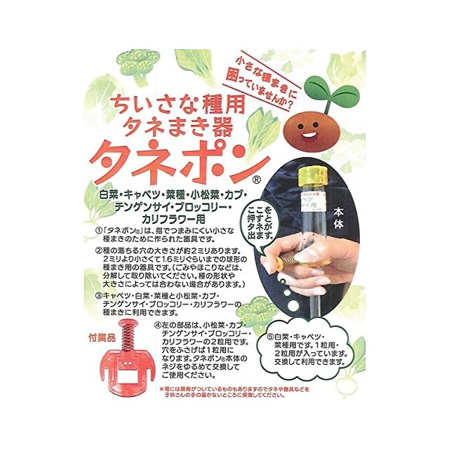 タネポンは指でつまみにくい小さな種まきのために作られた器具です。