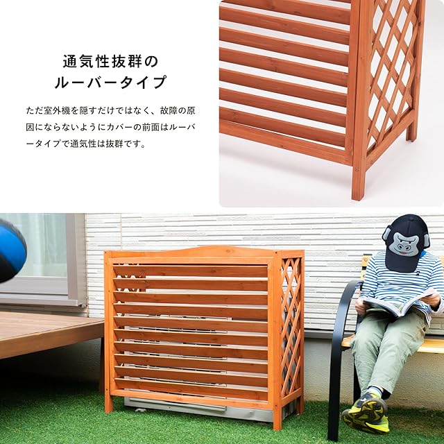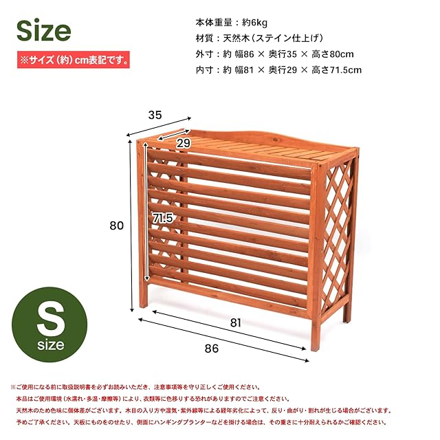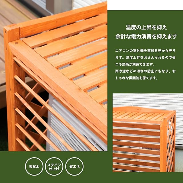 【特長】<br>●エアコンの熱を効率よく逃がす機能性重視の室外機カバー。 <br><br>【仕様】<br>●材質:杉(オイルステイン加工)<br>●S KHT10-5526…サイズ:(約)幅86×奥行35×高さ80cm<br>●内寸:(約)幅81×奥行29×高さ71.5cm<br><br>【備考】<br>※写真はご使用イメージです。<br>※お客様組立て式