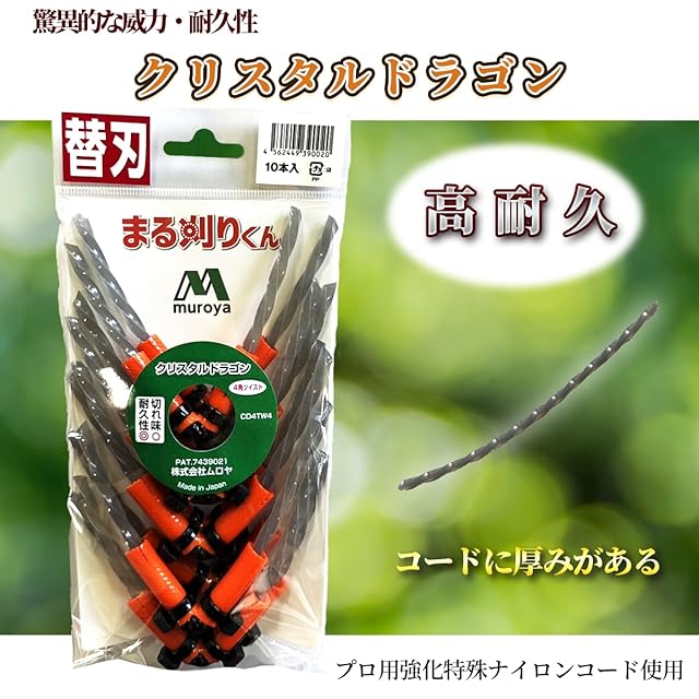 商品名:ムロヤ 万能ブラシ草刈り刃 万能強化コード まる刈りくん プロ用強化特殊ナイロンコード使用 (専用替え刃 10本 クリスタルドラゴン) CD4TW4