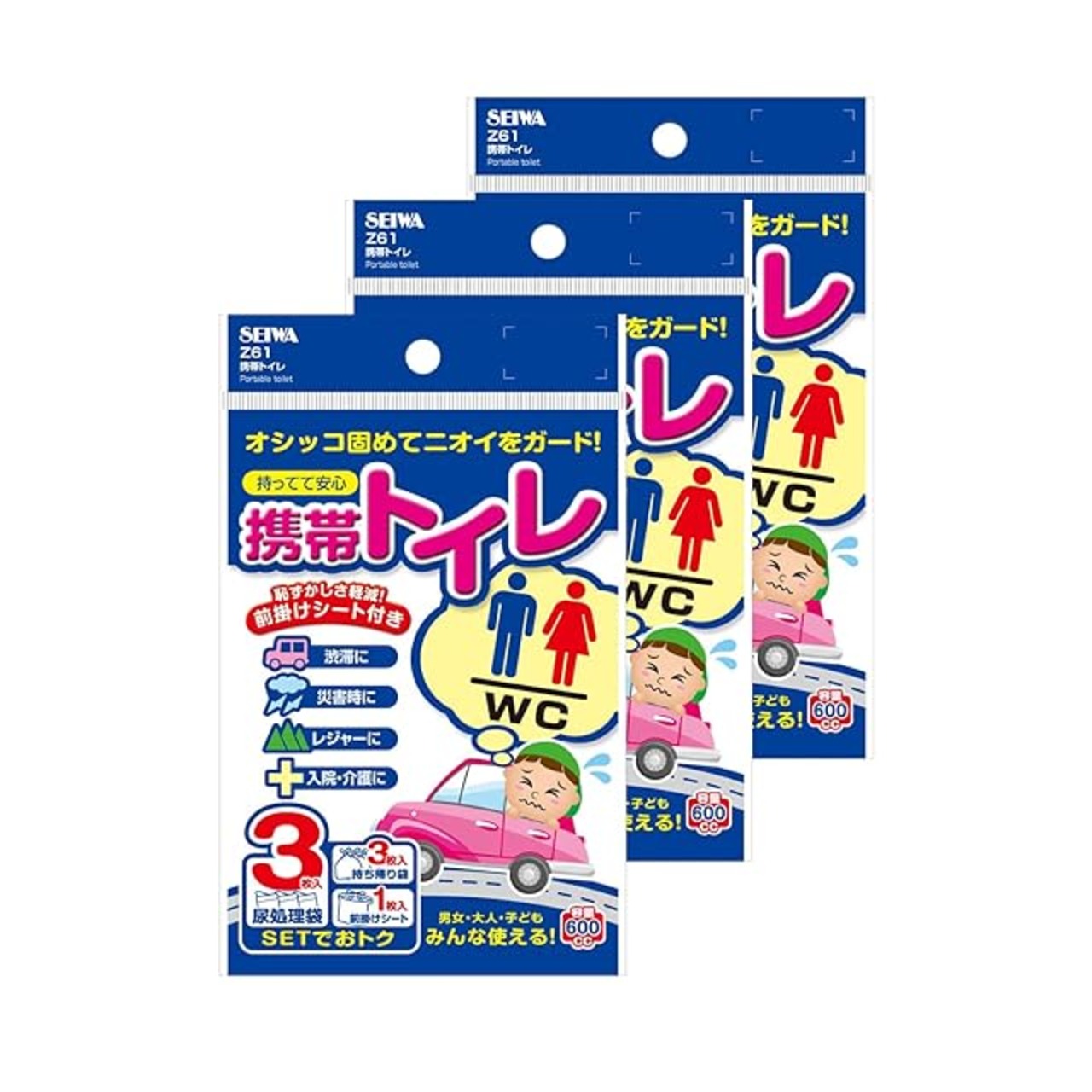 商品名:セイワ(SEIWA) 常備用品 携帯トイレ 3枚入×3個セット IMP153 前掛けシート付き 600cc 防災 災害 非常用 高速 携帯 簡易 緊急 車中泊 ロングドライブ トイレ