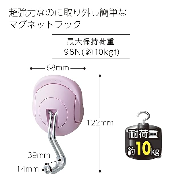 【最大保持荷重】 約10kgf(98N) 【カラー】 ピンク