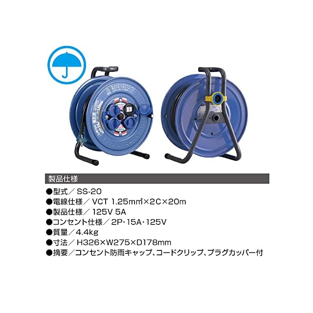 商品名:ハタヤ(HATAYA) コードリール 防雨サンデーレインボーリール 15A 20m 屋外用 SS-20