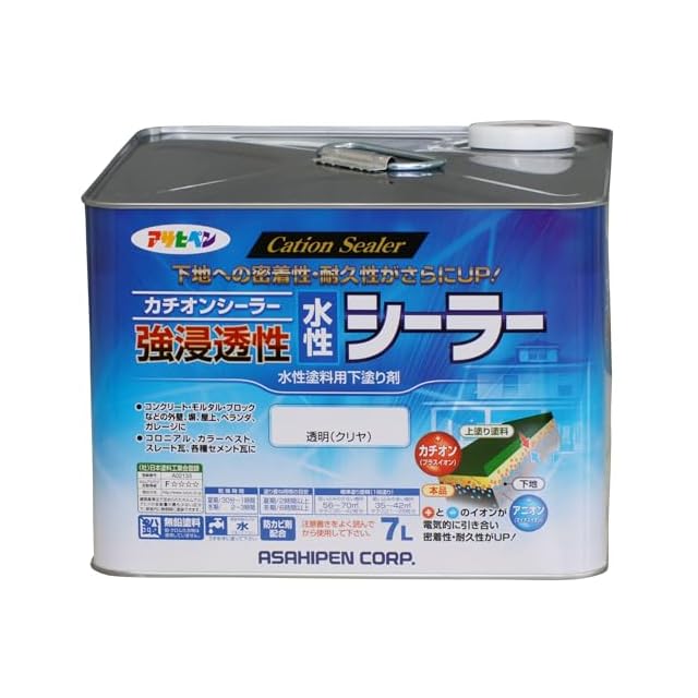 アサヒペン 塗料 ペンキ 強浸透性水性シーラー 7L 透明 クリヤ 水性 カチオンシーラー 下塗り用 1回塗り ヤニ止め効果 アク止め効果 密着性向上 耐久性向上 防カビ シックハウス対策品 日本製 | emishop315