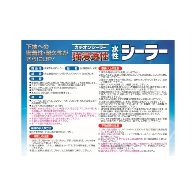 商品名:アサヒペン 塗料 ペンキ 強浸透性水性シーラー 7L 透明 クリヤ 水性 カチオンシーラー 下塗り用 1回塗り ヤニ止め効果 アク止め効果 密着性向上 耐久性向上 防カビ シックハウス対策品 日本製
