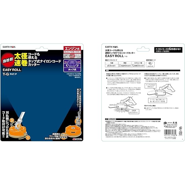 高儀(Takagi) 【燕三条ブランド】 EARTH MAN 太径コードも使える 速巻タップ式 ナイロンコードカッター EASY ROLL エンジン式 刈払機 草刈機 26cc以上対応 ナイロンコードが6m巻ける 巻き付き防止アングル 底面部 フリー可動 滑らせ刈り 斬丸 オレンジ×ゴールド T-G | emishop315