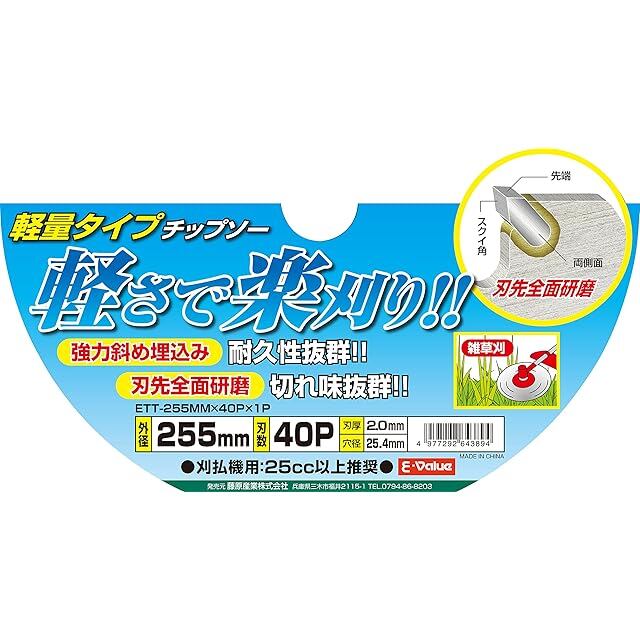 商品名:イーバリュー(E-Value) 軽量タイプチップソー 外径255mm×刃数40P 穴径25.4mm ETT-255×40P×1P