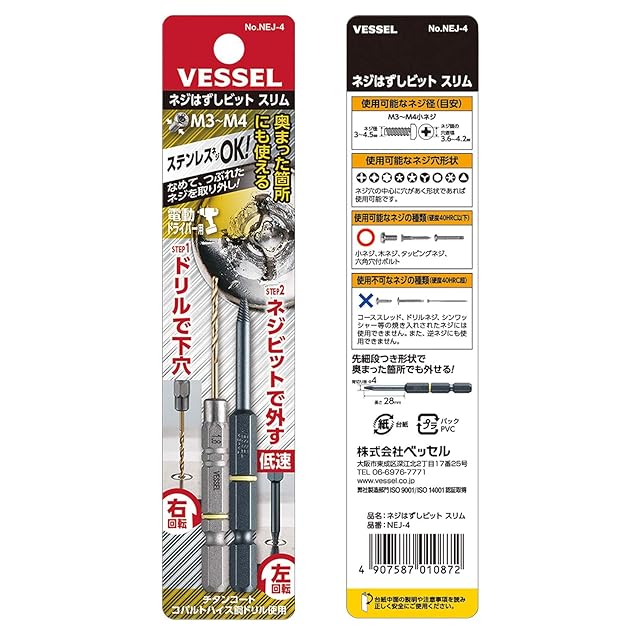 商品名:ベッセル(VESSEL) ネジはずしビット スリム なめたネジ つぶれたネジ M3~M4用 NEJ-4