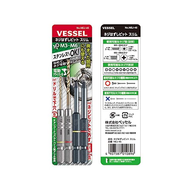 商品名:ベッセル(VESSEL) ネジはずしビット スリム 2種 なめたネジ つぶれたネジ M3~M6用 NEJ-45