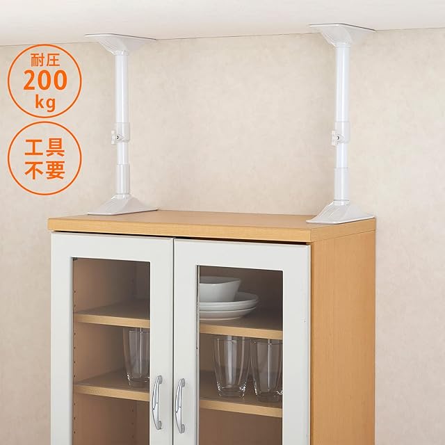 家具の転倒を防止し、万一の地震時に被害を軽減する防災用品。天井と家具のすき間を強力に圧着固定。耐圧202kgを実現。(公的機関による圧縮試験結果による)