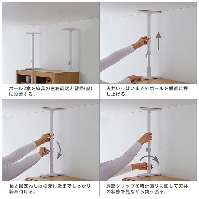 商品名:HEIAN SHINDO 家具転倒防止ポール L マットホワイト 取付高さ50~75cm 耐圧200kg UEQ-50W 平安伸銅工業
