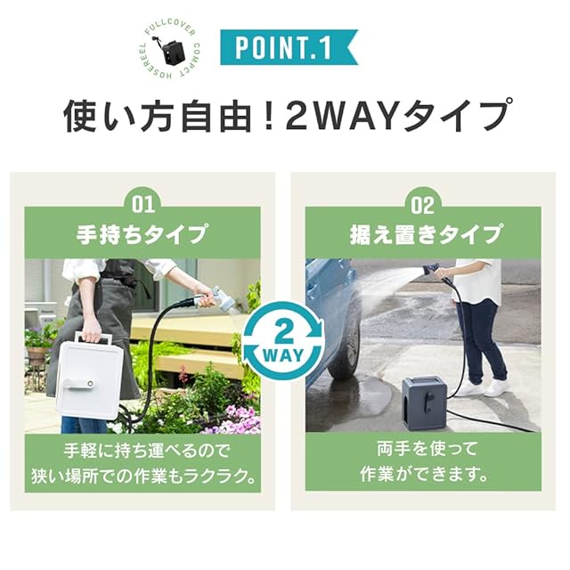 商品名:アイリスオーヤマ(IRIS OHYAMA) ホースリール 15m フルカバー仕様 蛇口ジョイント付 水形切替機能付 持ち運びしやすい持ち手付き FCH-15M ダークグレー