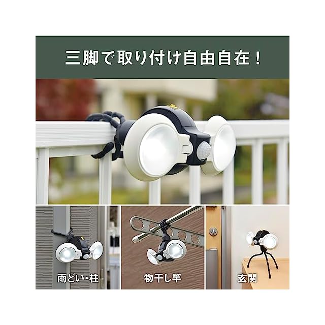 商品名:ムサシ(MUSASHI) センサーライト LEDセンサーライト 2灯 乾電池式 屋外 フレキシブルアーム 強力マグネット 防雨 IP43 フェンス 物置 ASL-092