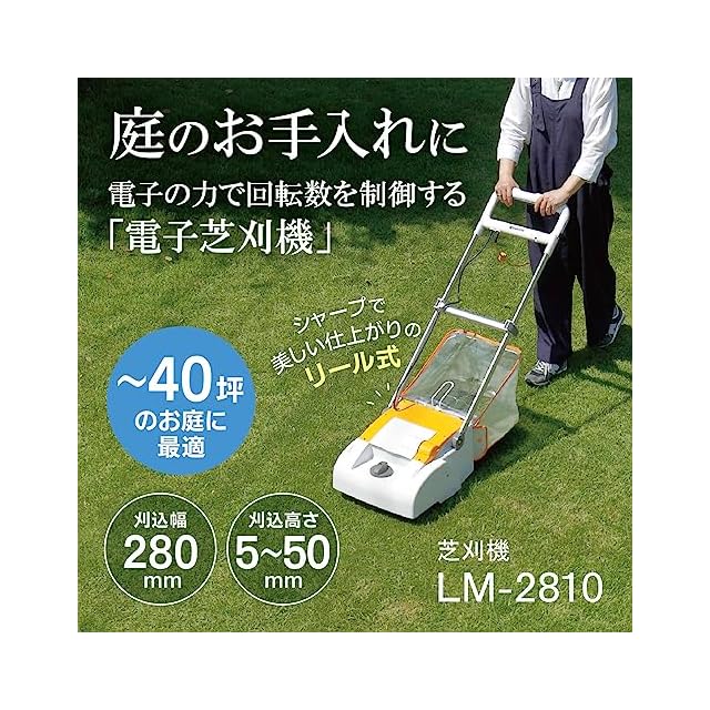 京セラ(Kyocera) 旧リョービ 電子芝刈機 LM-2810 刈込幅280mm 693751A 【芝刈りだけでなく別販売品のサッチング刃や根切り刃で芝のメンテナンス・成長促進ができる】 キレイな仕上がり 刈込幅280mm 刈込高さ19段調節 リール式5枚刃 集草容量24L 40坪まで | emishop315