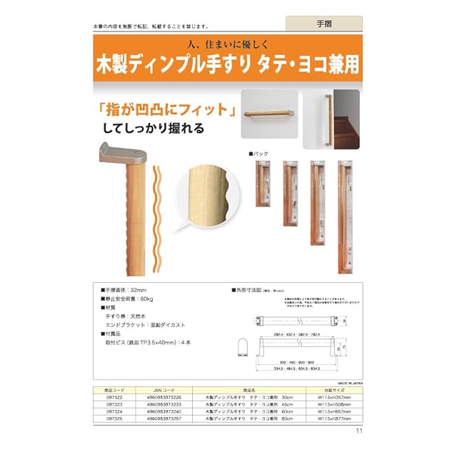 材質:てすり棒:天然木 エンドブラケット:亜鉛ダイカスト
