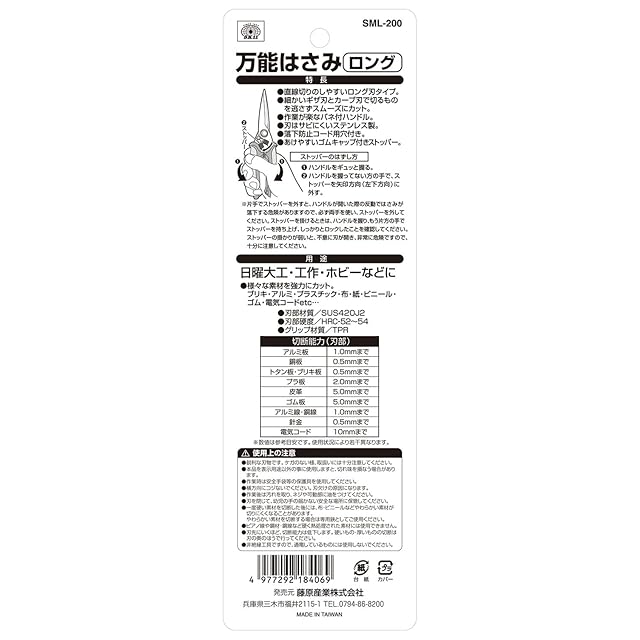 商品名:SK11(エスケー11) 万能はさみ ロング SML-200 作業用・大工用・アウトドア用