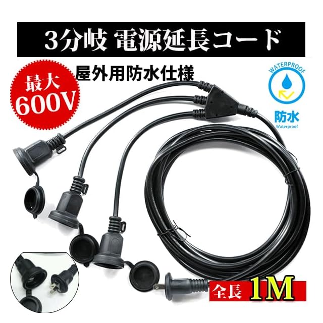 商品名:[延長コード専門家] AKIRARI 延長コード 1m 防雨 3口 ソフトタイプ 3分配 電源ケーブル 屋内屋外作業 電工 12A 3個口 1200W 二重被覆 屋内 室外 室内 活用 電源コード イルミネーション用 延長電源 延長電源コード 電源延長ケーブル (3口/防雨型, 1m)