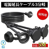 商品名:[延長コード専門家] AKIRARI 延長コード 5m 防雨 3口 ソフトタイプ 3分配 電源ケーブル 屋内屋外作業 電工 125v12A 3個口 耐圧600v ソフト 二重被覆 屋内 室外 室内 活用 電源コード イルミネーション用 延長電源 延長電源コード 電源延長ケーブル (3口/防雨型, 5m)