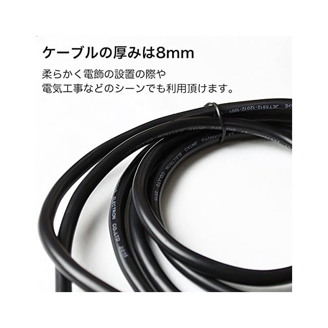 ●定格電圧 / 電流:AC100V 50/60Hz(12A/125Vまで) 色:黒 電線仕様: VCT 2芯×0.75mm2 導線:銅線