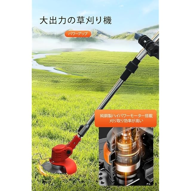 商品名:草刈り機 充電式草刈機 コードレス バッテリー付き 軽量 ナイロンカッター 伸縮 角度調整 枝切り 植木 雑草 刈払機 HONGGCJ