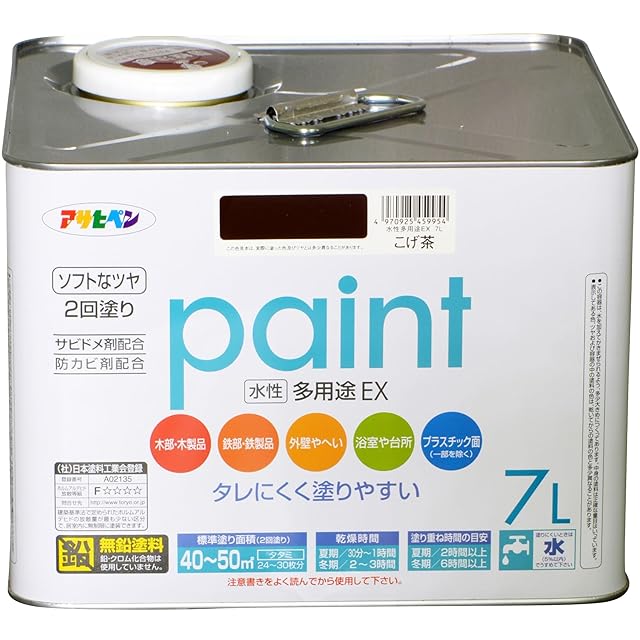 商品名:アサヒペン 塗料 ペンキ 水性多用途EX 7L こげ茶 水性 多用途 半ツヤ ソフトなツヤ 低臭 防カビ サビドメ剤配合 タレにくく塗りやすい シックハウス対策品 日本製