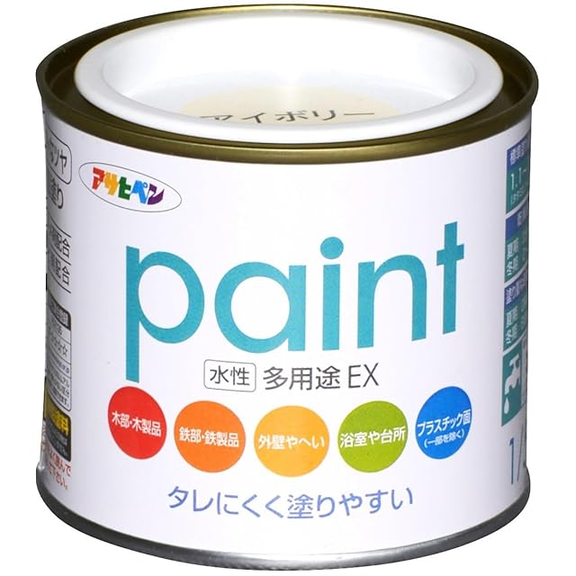 アサヒペン 塗料 ペンキ 水性多用途EX 1/5L アイボリー 水性 多用途 半ツヤ ソフトなツヤ 低臭 防カビ サビドメ剤配合 タレにくく塗りやすい シックハウス対策品 日本製 | emishop315