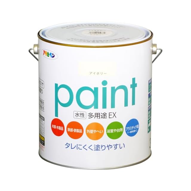 商品名:アサヒペン 塗料 ペンキ 水性多用途EX 3L アイボリー 水性 多用途 半ツヤ ソフトなツヤ 低臭 防カビ サビドメ剤配合 タレにくく塗りやすい シックハウス対策品 日本製