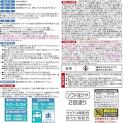 用途:(屋内外区分:屋内外用)ドア、雨戸、羽目板、板べい・ガーデン用品など屋内外の木部や家具・木工品などの木製品。浴室・居間・台所などのしっくい・モルタル・コンクリート壁・板壁。コンクリート・ブロック・スレート・各種サイディングなどの外壁やへい。フェンス・門扉・鉄柵・看板・おもちゃなどの鉄部・鉄製品。発泡スチロール・アクリル・硬質塩ビなどのプラスチック面。