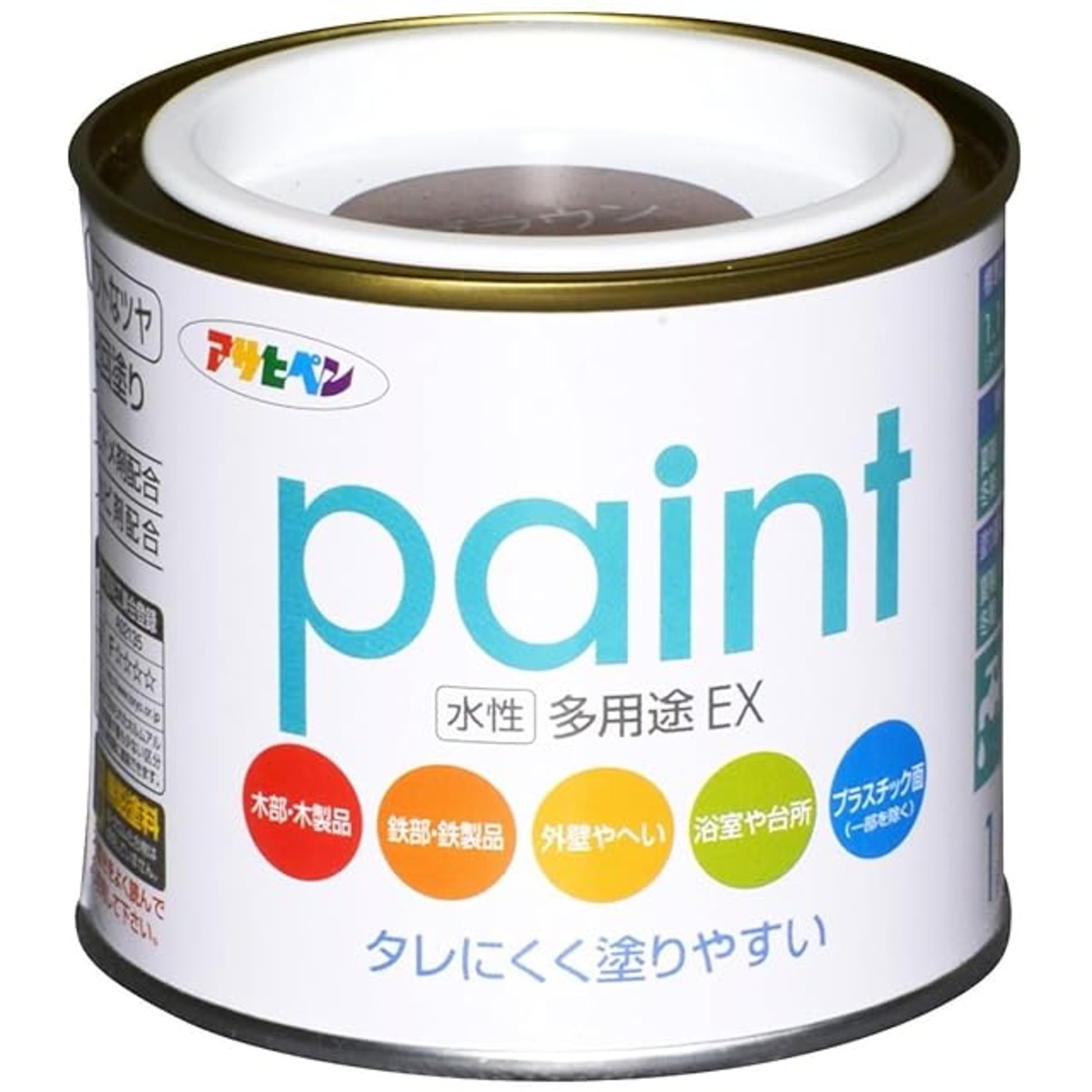 アサヒペン 塗料 ペンキ 水性多用途EX 1/5L ブラウン 水性 多用途 半ツヤ ソフトなツヤ 低臭 防カビ サビドメ剤配合 タレにくく塗りやすい シックハウス対策品 日本製 | emishop315