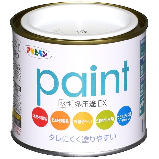 商品名:アサヒペン 塗料 ペンキ 水性多用途EX 1/5L 白 水性 多用途 半ツヤ ソフトなツヤ 低臭 防カビ サビドメ剤配合 タレにくく塗りやすい シックハウス対策品 日本製