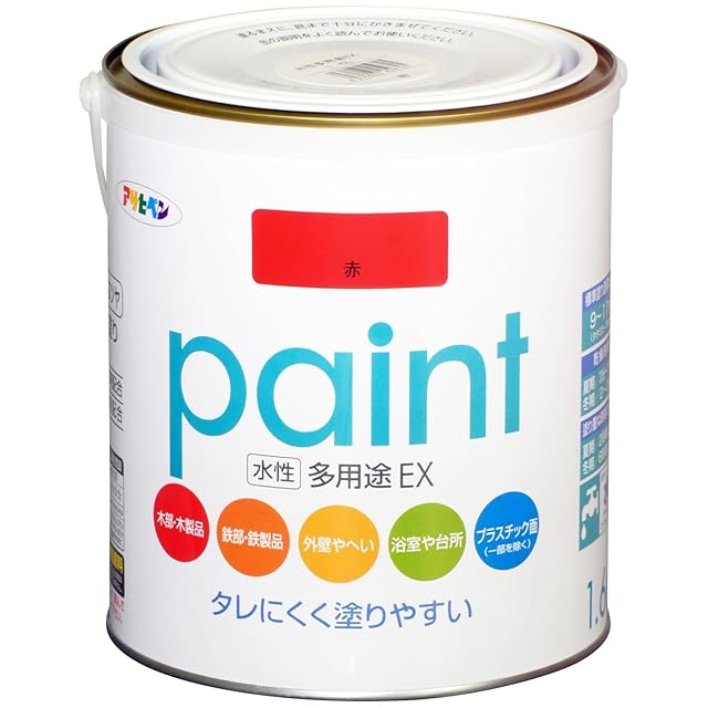商品名:アサヒペン 塗料 ペンキ 水性多用途EX 1.6L 赤 水性 多用途 半ツヤ ソフトなツヤ 低臭 防カビ サビドメ剤配合 タレにくく塗りやすい シックハウス対策品 日本製