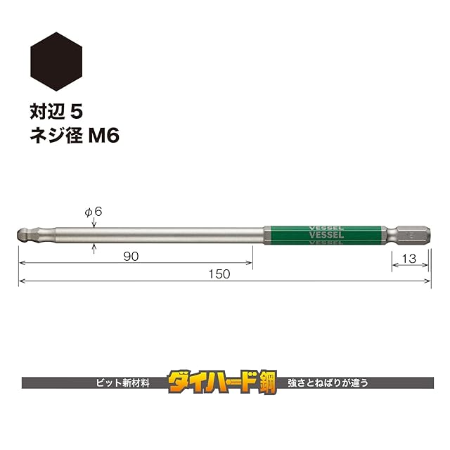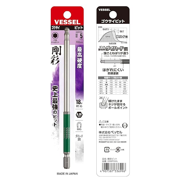 商品名:ベッセル(VESSEL) 片頭ボールポイント 剛彩ビット ロングタイプ 対辺5×150 1本 GSBP050L
