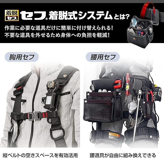 タジマ セフシステム 着脱式工具差し 本革 2本差し 堅牢でしなやかな上質なレザー(牛本革) SFKSK-P2 ブラック 着脱楽々 ベルトに後から装着可能 腰道具の組み換えが簡単 使う道具だけを選んで装着 腰の負担軽減 工具の落下防止 | emishop315