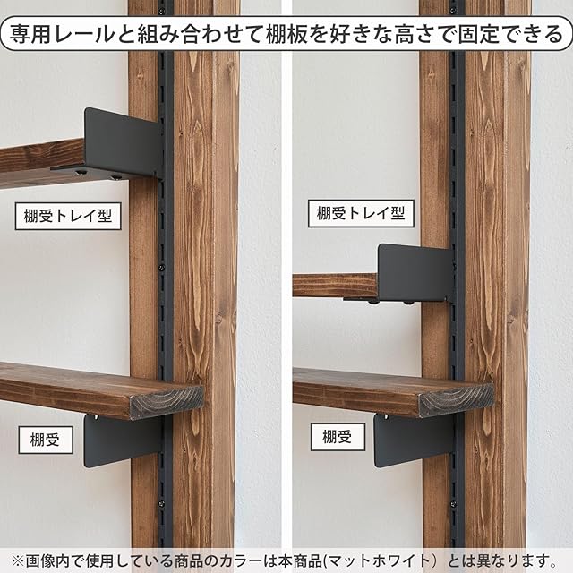 初心者でもクオリティの高いインテリア収納が作れるShelf Rail(シェルフレール) シリーズの棚受トレイ型パーツです。同シリーズのレールパーツに取り付けてご利用ください。