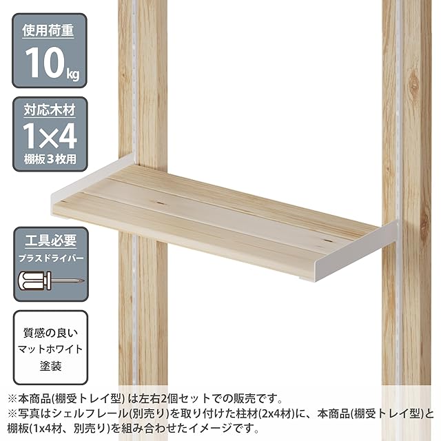 平安伸銅工業 LABRICO 棚柱 棚受け 棚受け金具 2枚入 トレイ型 (棚板3枚用) シェルフレール対応 最大使用荷重10kg アイアン 280 取付ねじ付き マットホワイト IXO-533 | emishop315