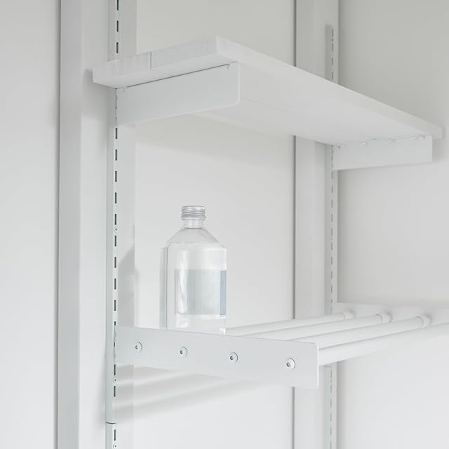 初心者でもクオリティの高いインテリア収納が作れるShelf Rail(シェルフレール) シリーズの長さ1200mm(120cm)のレールパーツです。棚柱、ガチャレールとも呼ばれ、棚受や伸縮ハンガーなどのオプションパーツを、好きな高さに設置することができます。