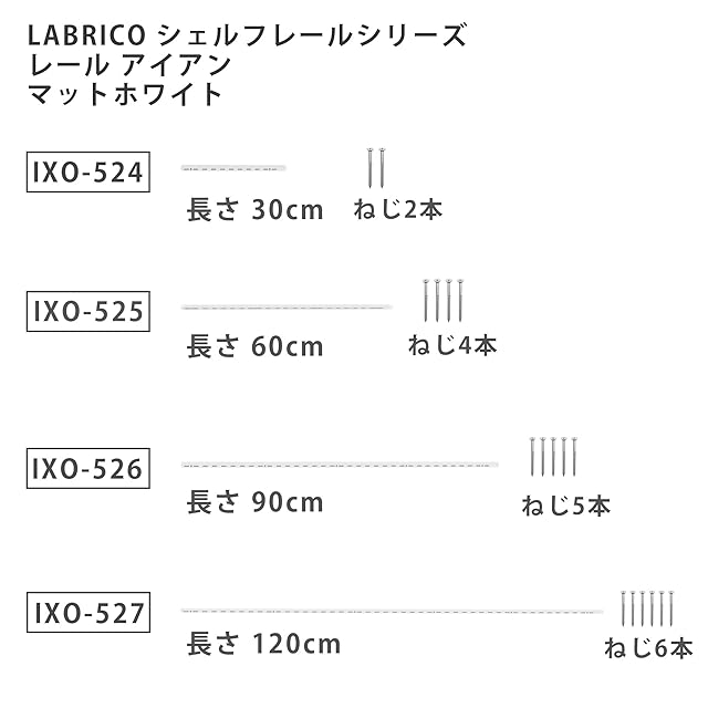 商品名:平安伸銅工業 LABRICO 1200 棚柱 シェルフレール アイアン 長さ120cm 取付ねじ付き マットホワイト IXO-527