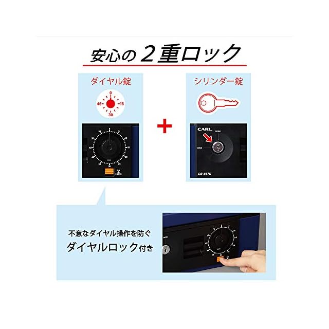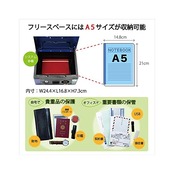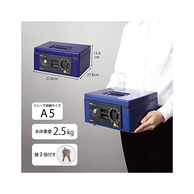 【主な機能】ダイヤルロック機能、紙幣二段トレー、硬貨飛散防止、A5書類収納可能、鍵2個付き(シリンダー錠)