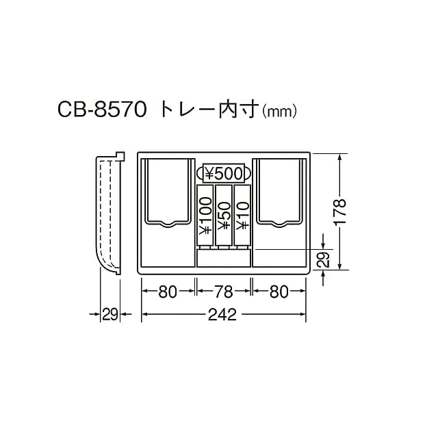 【硬貨収納枚数】500円32枚、100円46枚、50円44枚、10円50枚