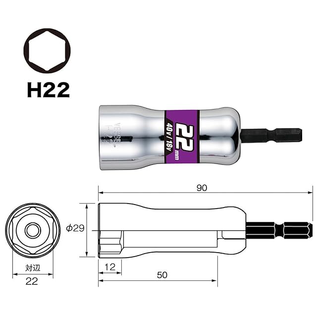 商品名:ベッセル(VESSEL) セミロングソケット 対辺22×90mm 6角 SL202290