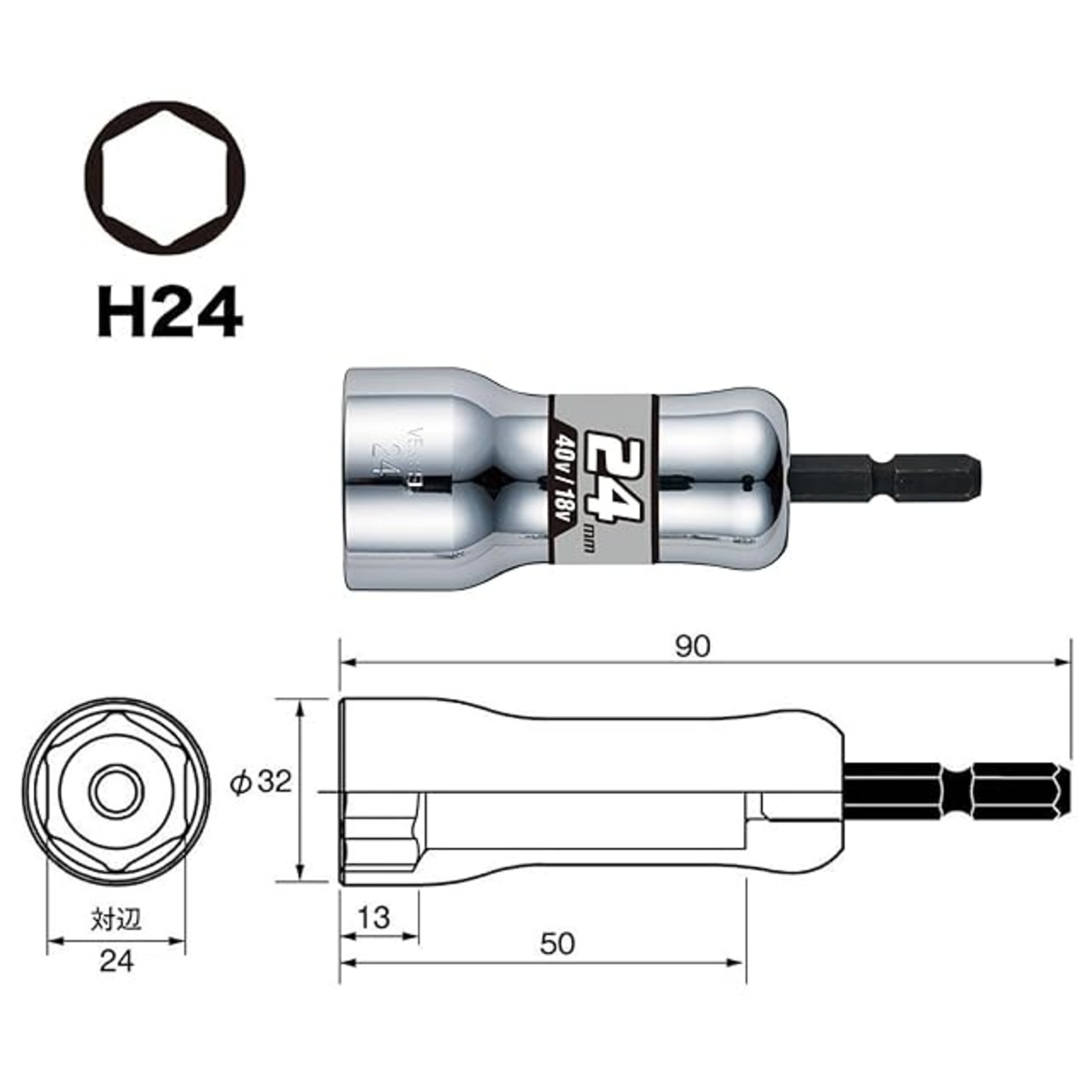 商品名:ベッセル(VESSEL) セミロングソケット 6角 対辺24×90mm SL202490